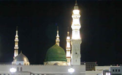 When you enter the Prophet's Mosque, enter with your right foot first, saying the name of Allah the Most High, and evoking blessings on His Prophet (peace and blessings be upon him), and ask Allah to open the gates of his mercy for you. The recommended words for entering any mosque, including the Prophet's Mosque, are:
